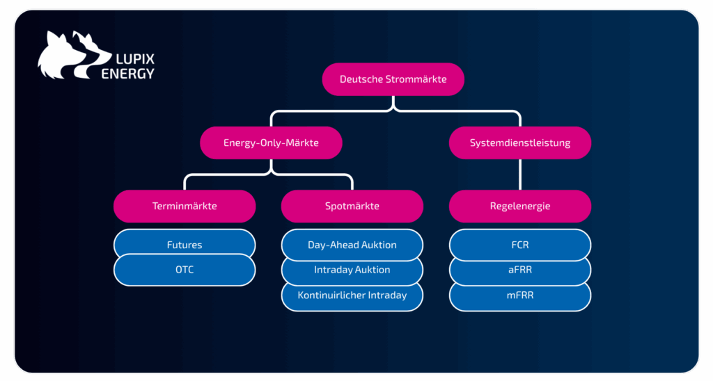 Energie ist für die Industrie längst nicht mehr bloß ein Kostenblock, sondern ein strategischer Faktor. Investitionen in Elektrifizierung, Ladeinfrastruktur und eigene Stromerzeugung aus erneuerbaren Energien treffen auf volatile Märkte und neue Spielregeln der Energiewende. Beschaffung und Bilanzkreisführung liegen im Alltag zurecht bei Energieversorgern. Für die eigene Energiestrategie hilft es dennoch, die zentrale Marktarchitektur zu verstehen und Entscheidungen daran auszurichten. Die wichtigsten deutschen Märkte sind hier grafisch dargestellt und im Folgenden näher beschrieben: